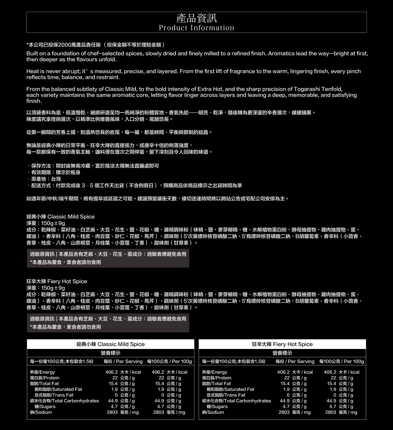注意事項|1.本產品內含芝麻、大豆、花生、蛋成分之過敏原,過敏者應避免使用 2.此產品為葷食,素食者請勿食用