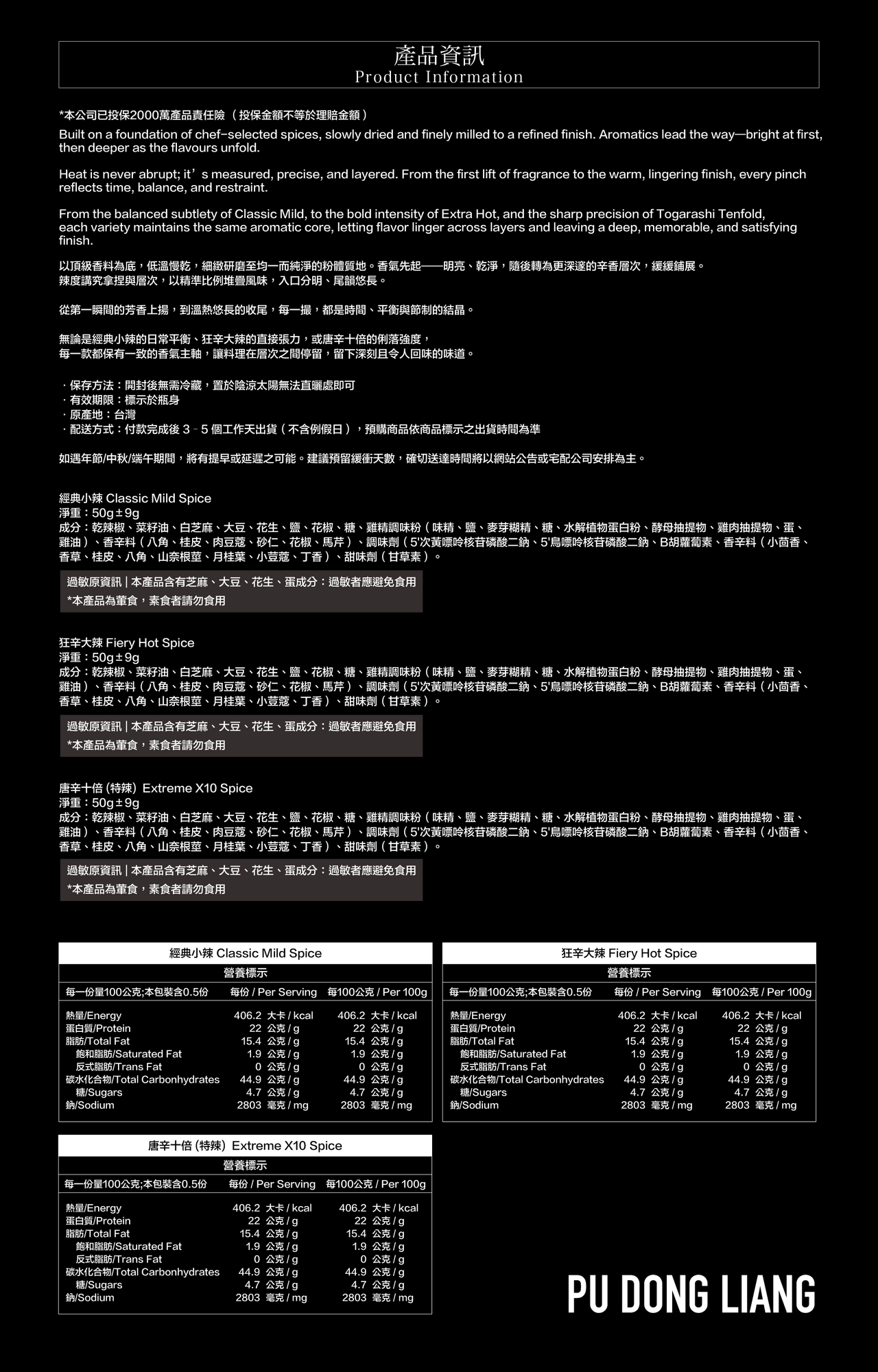 注意事項|1.本產品內含芝麻、大豆、花生、蛋成分之過敏原,過敏者應避免使用 2.此產品為葷食,素食者請勿食用